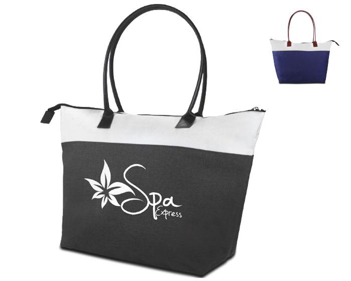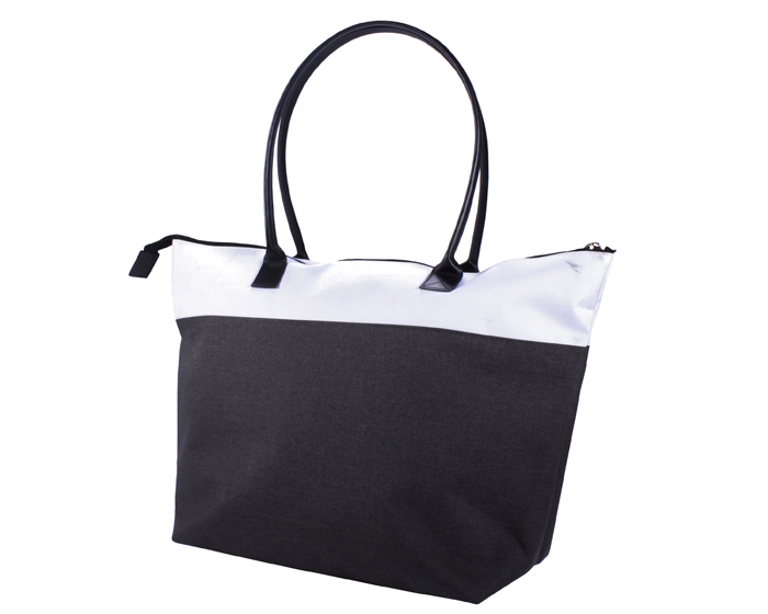 ALIN - Bolsa de poliéster bicolor con cierre y asas de curpiel.