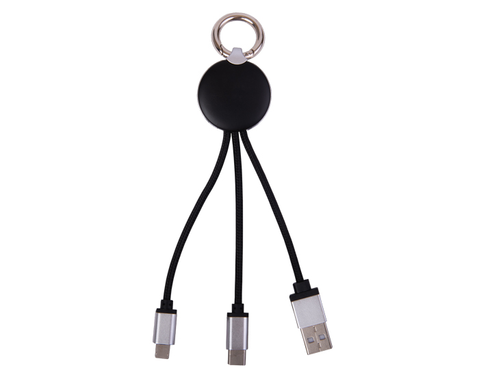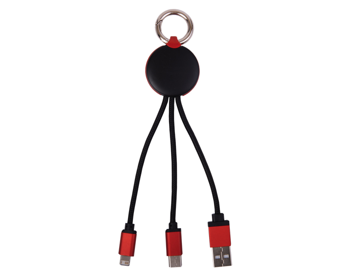KRAKEN - Cable conector USB con adaptador dúo, para iPhone y Android, así como tipo C. Cuenta con arillo metálico de llavero. Al igual que con luz LED que se enciende al conectar. Se recomienda el grabado láser para la visualización de la luz.