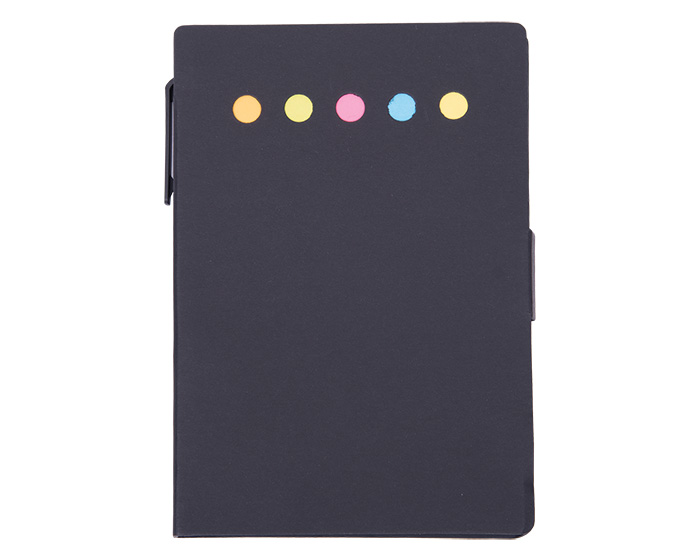 ORIENTE - Estuche de papel reciclado con block de 60 hojas blancas y banderas adhesivas, incluye bolígrafo de papel reciclado.