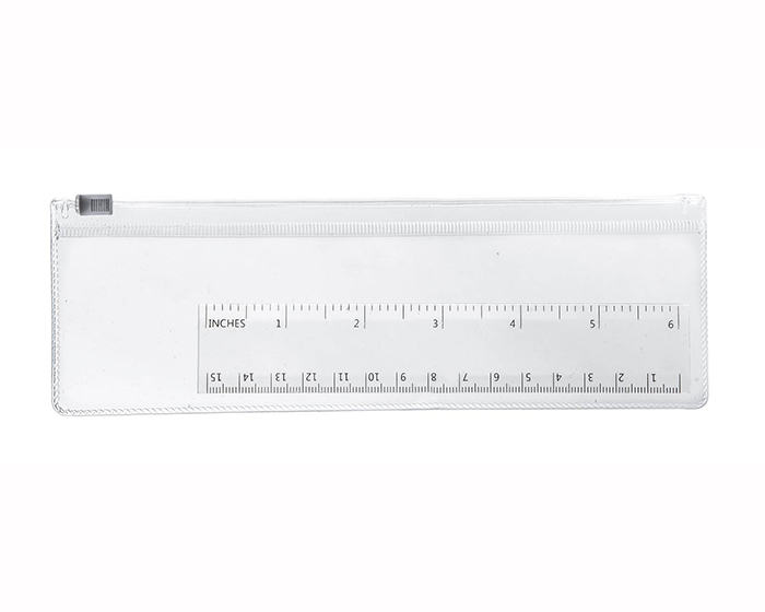 GASPER - Portalapicera transparente de plástico con cierre de presión. Incluye una regla transparente de 15 cm.