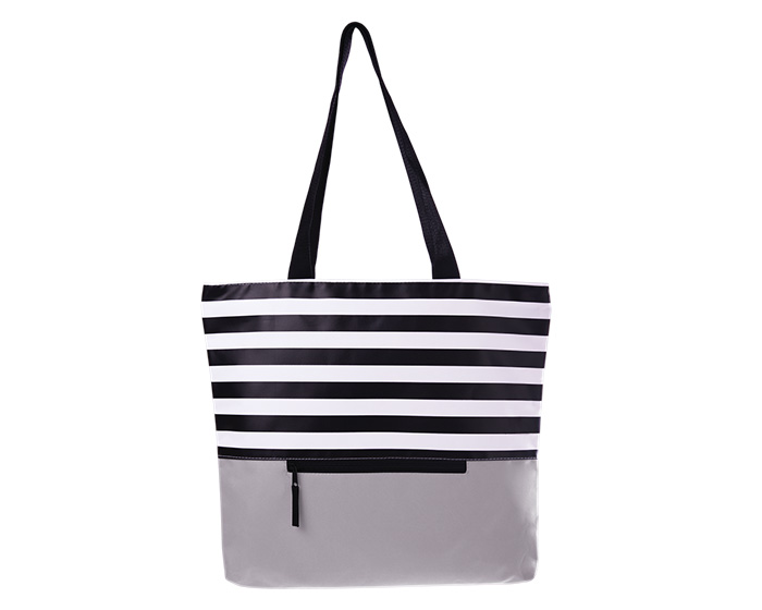 MARGIN - Bolsa con diseño de franjas horizontales. Cuenta con bolso exterior de cierre y asas para transportar.