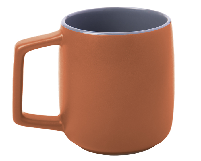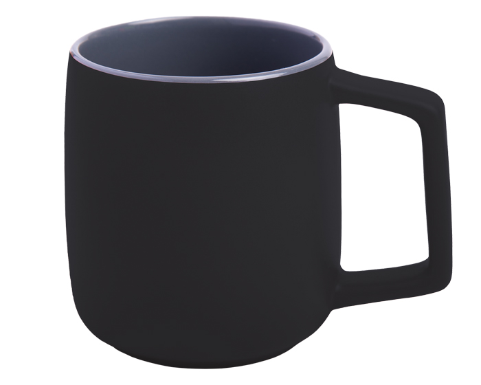 ELVIS - Taza acabado mate, interior color gris brillante y asa cuadrada. CAP. 14 OZ. Venta en múltiplos de 12.