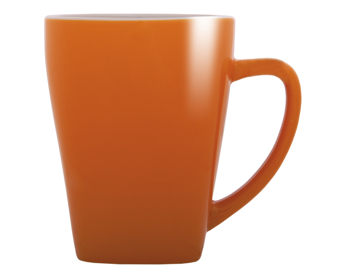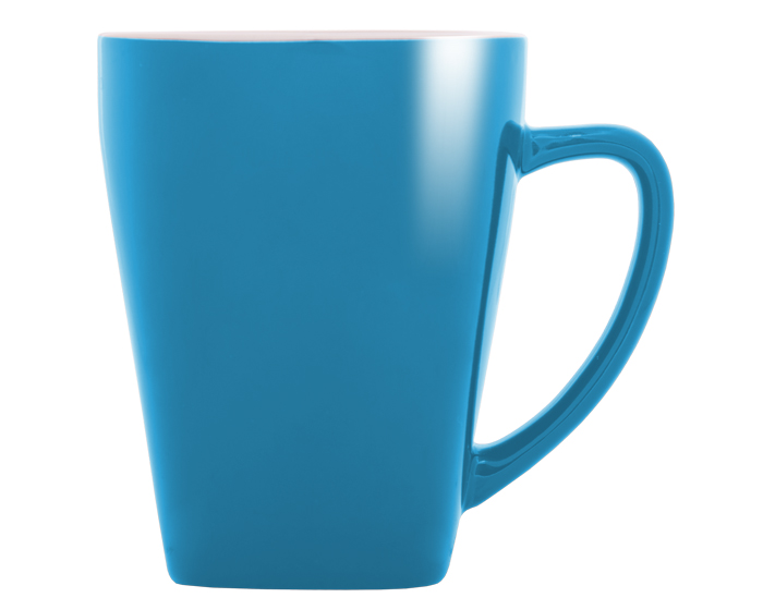 ABBA - Taza con base cuadrada y borde superior redondo, exterior a color semi mate e interior blanco brillante. CAP. 12 OZ. Venta en múltiplos de 12.