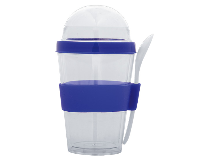 FROYO - Vaso de doble pared de plástico con cuchara. CAP. 300 ml. Presentación: caja en color blanco. *BPA FREE.