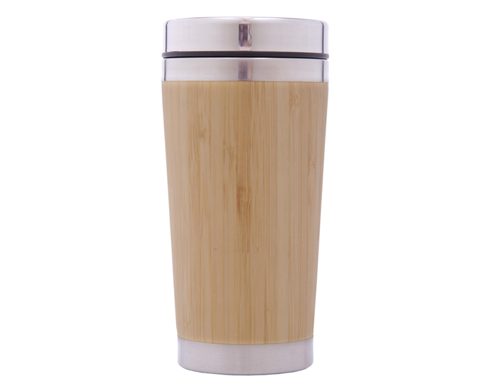 MATERIAL: Acero Inoxidable / Bambú MEDIDAS: Ø 8.2 x 17.5 cm IMPRESION: TM SE GL FC MED. EMPAQUE: 56 x 29 x 38 cm PESO EMPAQUE: 10 kg PIEZAS EMPAQUE: 36