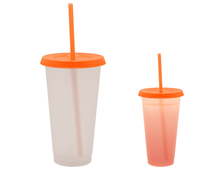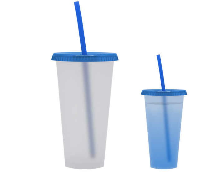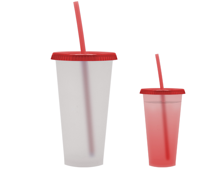 SNOW - Vaso de plástico con tapa a presión y popote. El cuerpo del vaso cambia al color de la tapa al agregar agua fría. CAP. 700 ml. *BPA FREE.