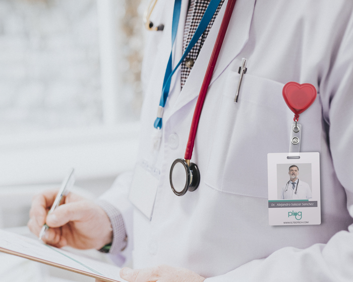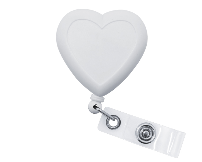 HERA - Portagafete en forma de corazón, clip metálico en la parte trasera que funciona para sujetarse a la ropa, hilo elástico y broche para gafete.