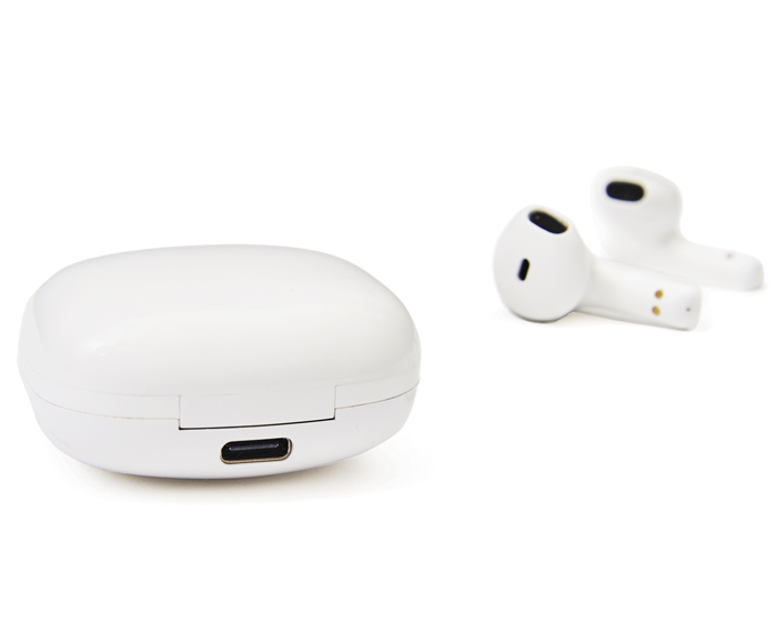 AVICII - Audífonos inalámbricos bluetooth con función manos libres con estuche de 500 mAh, entrada de carga tipo C. Cuenta con indicadores de luz LED, botón touch para encender, apagar y pausar el audio. Duración aprox. de reproducción 45 min. Compatible con iOS y Android. Incluye cable cargador USB. Presentación: Caja en color blanco.