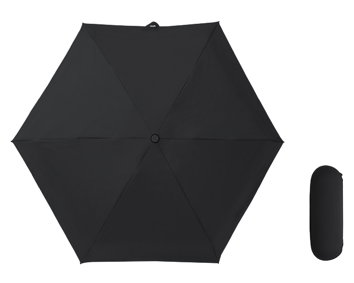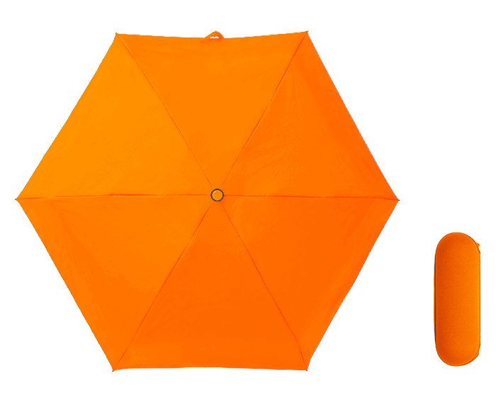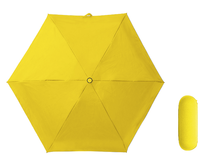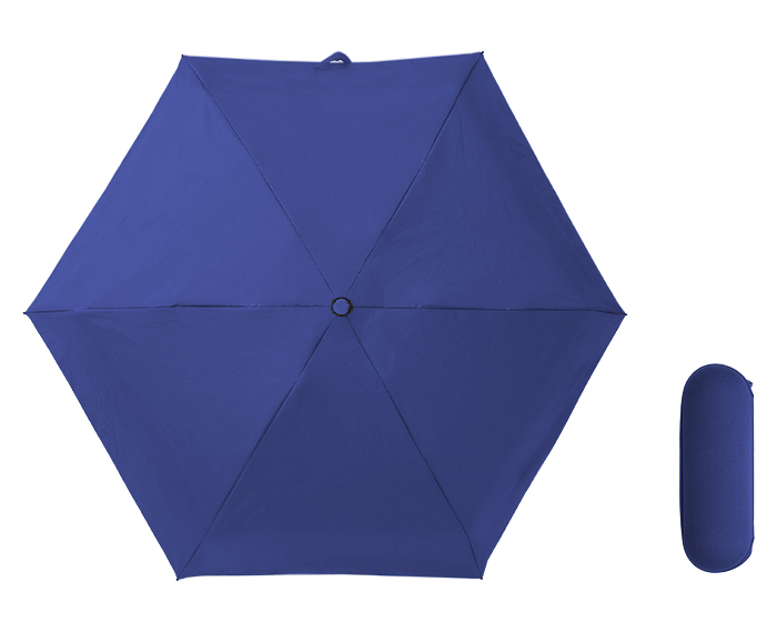 FANTASSY - Paraguas de bolsillo con protección de rayos UV y botón de apertura manual, costillas de fibra de vidrio, varillas y eje de metal. Cuenta con mango en acabado rubber y asa para colgar. 6 gajos. Incluye funda individual y estuche con cierre para guardar.