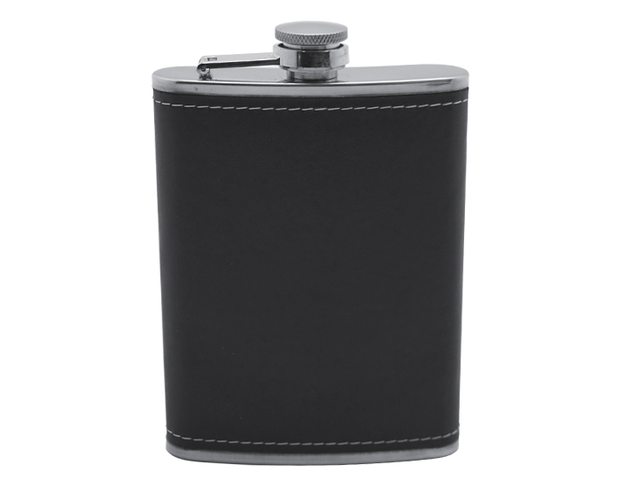 GATSBY - Set de licorera que incluye: Licorera de bolsillo de acero inoxidable con tapa de rosca y detalle en curpiel con CAP. 8 OZ, un vaso de vidrio para whisky, pinzas de acero inoxidable para hielos, estuche con 4 hielos metálicos y 2 vasos de acero inoxidable para shots. Incluye caja de regalo.