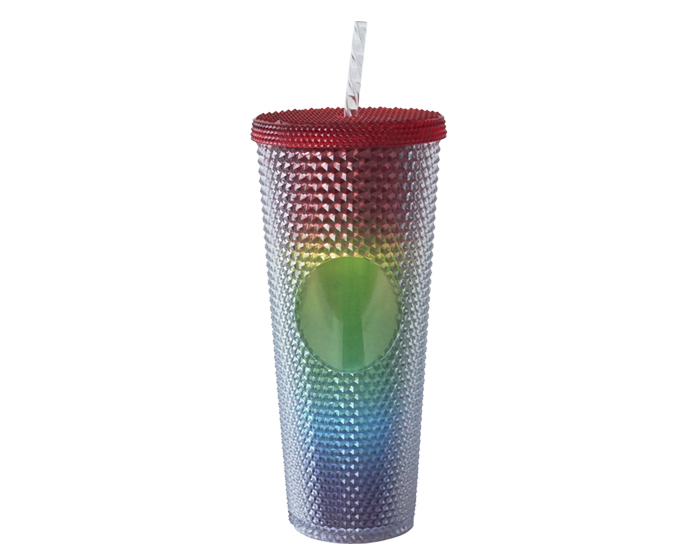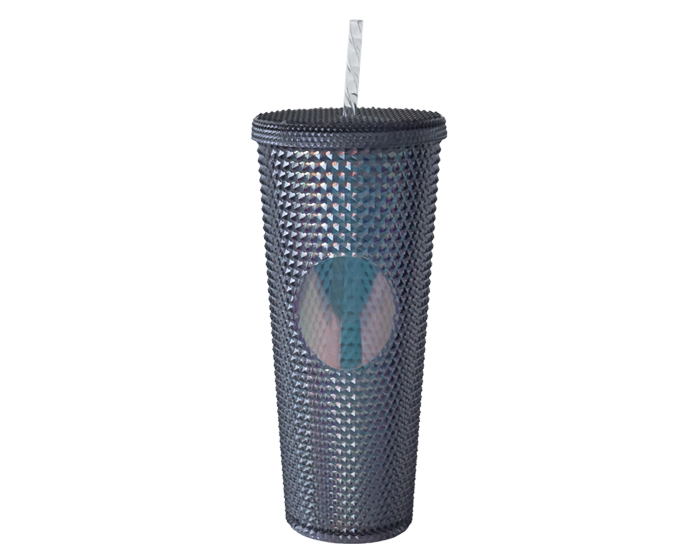 COCONUT - Vaso de plástico texturizado de doble pared, con tapa de rosca, cuenta con popote texturizado color transparente. CAP. 750 ml. Presentación: caja en color blanco. *BPA FREE.