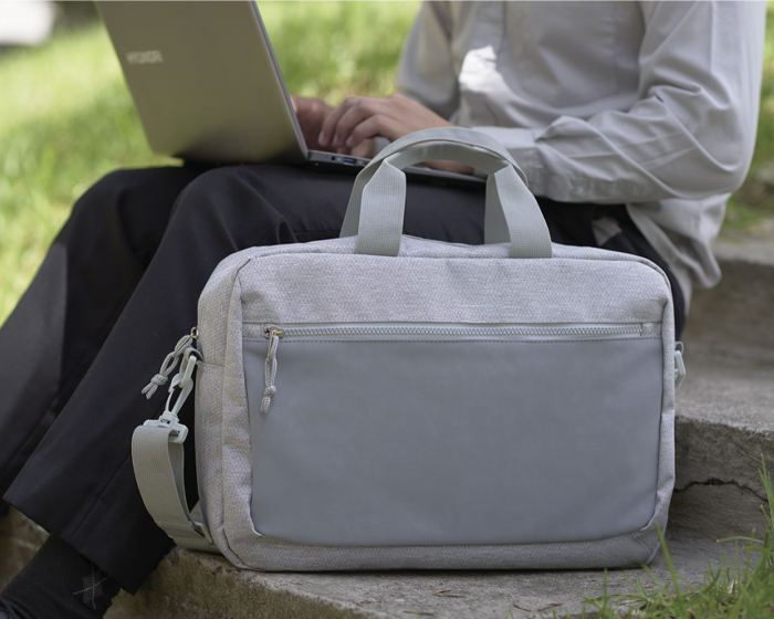 DARIO - Maletin con tejido texturizado, cuenta con cierre en la cubierta principal, interior con forro cosido y acolchado con espacio para laptop (16 pulgadas), espacio para tarjetas y accesorios, compartimento frontal con textura y cierre, correa ajustable con soporte acolchado y asas para transportar.