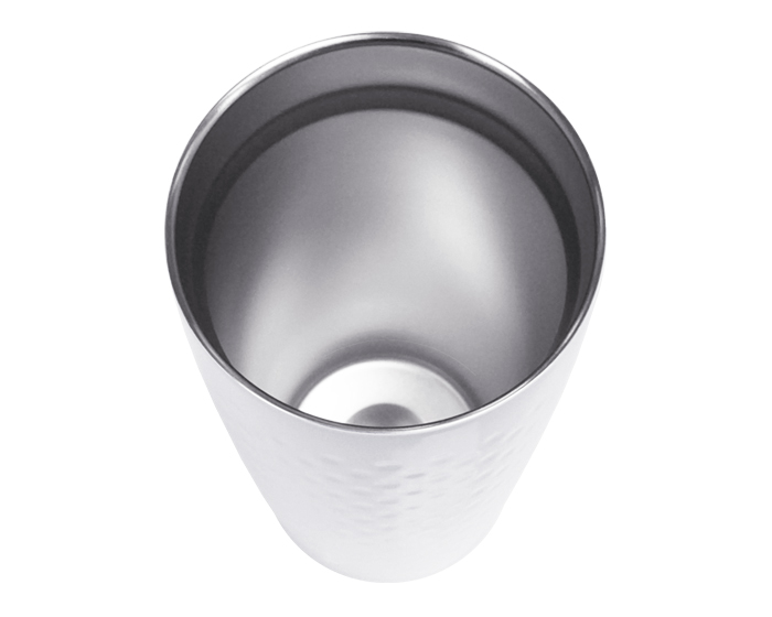 TIGER - Termo de doble pared de acero inoxidable insulado al alto vacío, tiene una sutil textura de pelota de golf; conserva las bebidas calientes por 10 hrs. y frías por 20 hrs. Cuenta con tapa a presión transparente con seguro deslizable. CAP. 590 ml. Presentación: caja en color blanco.