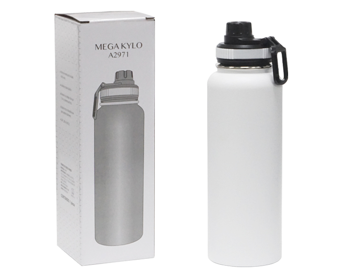 MEGA KYLO - Termo de doble pared insulado al alto vacío con acabado de polvo plástico. Mantiene las bebidas frías por 12 hrs y calientes por 6 hrs. Tapa de rosca con boquilla y asa para sujetarlo fácilmente. CAP. 1,200 ml. Presentación: Caja en color blanco.