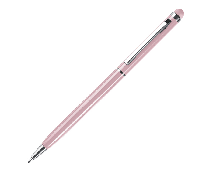 ODDRA - Bolígrafo metálico, con recubrimiento brillante en color. Clip, punta y detalles en color plata. Esbelto y ligero diseño que lo hace muy cómodo al escribir. Cuenta con touch para dispositivos táctiles. Mecanismo retráctil.