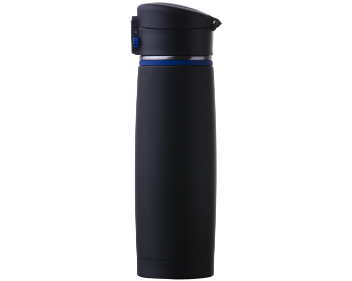 TOWER - Termo de acero inoxidable con doble pared, esmalte negro con detalles en 3 colores diferentes, incluye tapa de rosca con seguro para evitar derrames. Interior de acero inoxidable 304. CAP. 500 ml. Presentación: caja en color blanco.