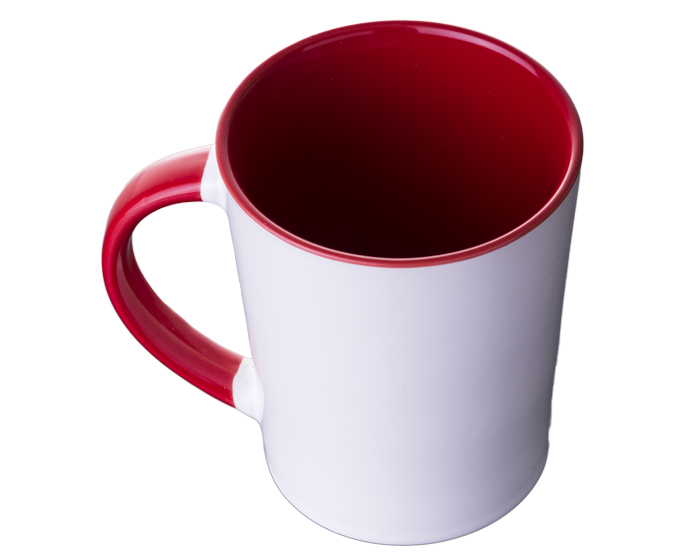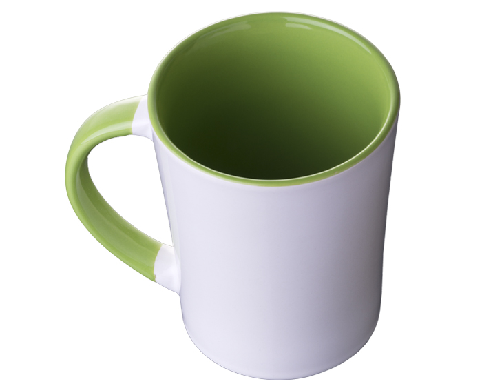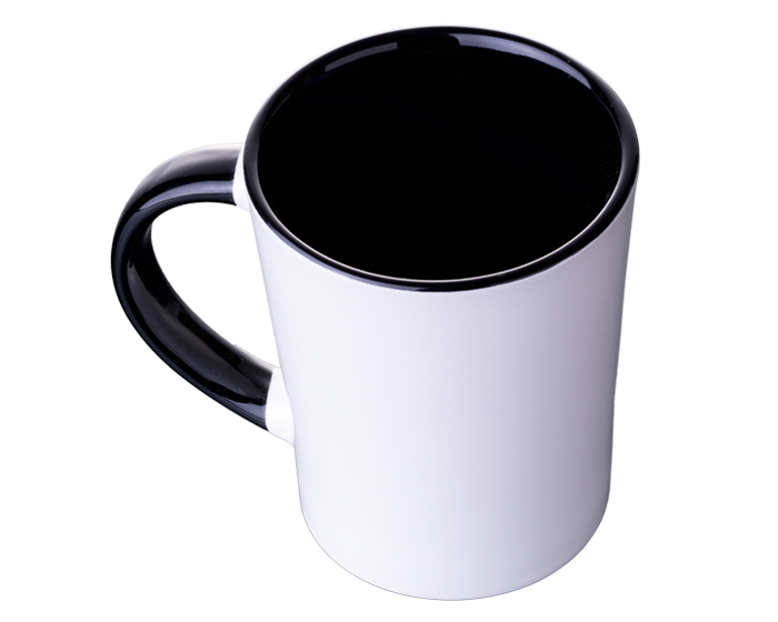 ARLES - Tarro de cerámica bicolor, forma cónica, con asa en combinación, con color interior brillante, acabado liso vitrificado. CAP. 14 OZ. Venta en múltiplos de 12.