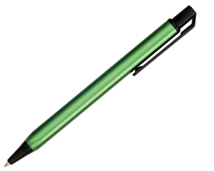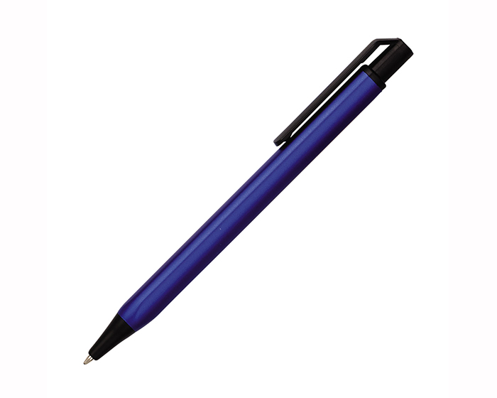 PRINCE - Bolígrafo metálico brillante, punta y clip de plástico en color negro. Diseño ergonómico de cuerpo triangular. Mecanismo de click.