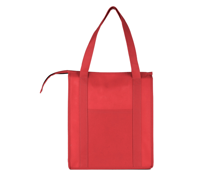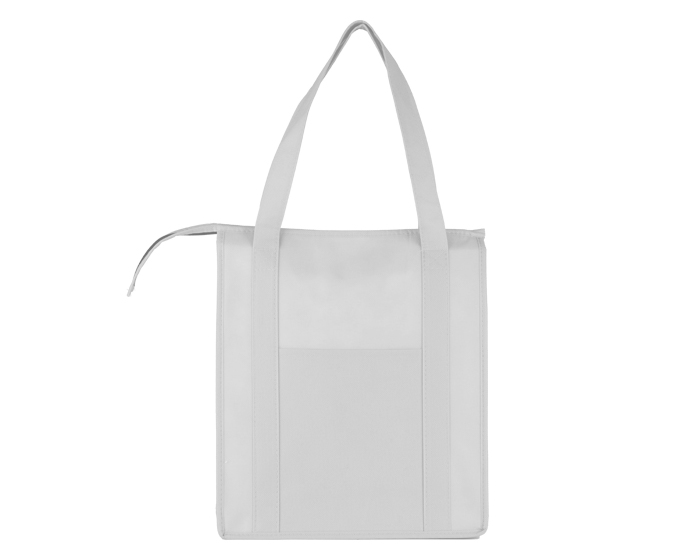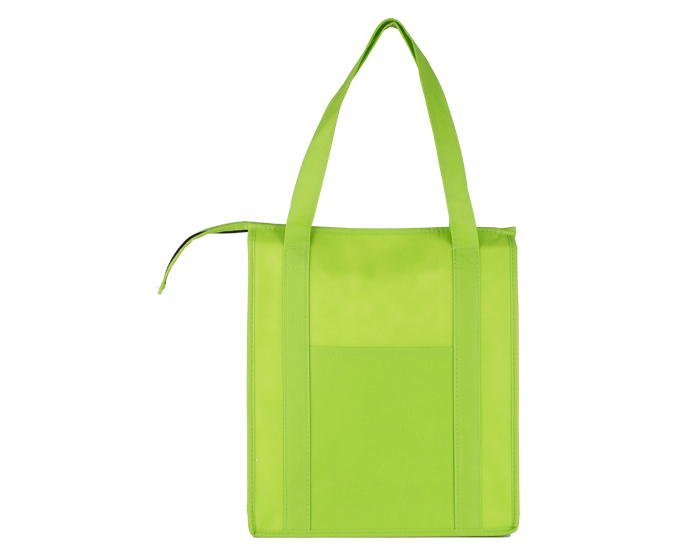 PAOLA - Lonchera ecológica tipo bolsa con interior térmico, fondo plano, cierre superior, compartimento frontal y asas reforzadas cosidas al cuerpo de la bolsa.