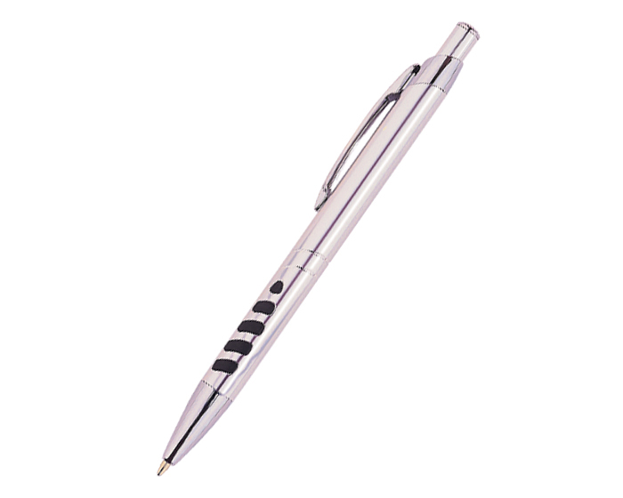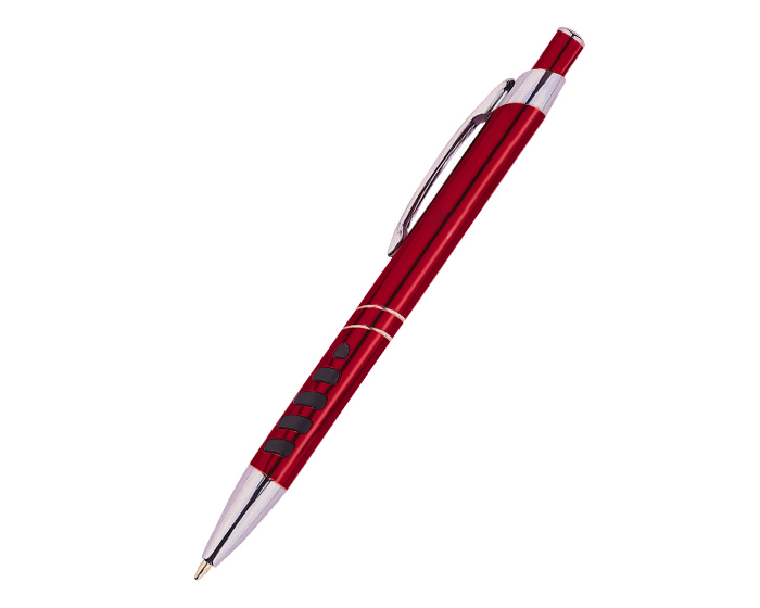 MAVI - Elegante y moderno bolígrafo metálico con cuerpo en color, punta y clip en acabo plateado. Cuenta con goma antideslizante en la parte inferior, hecha a través de detalles con diseño en relieve de color negro. Mecanismo de click.