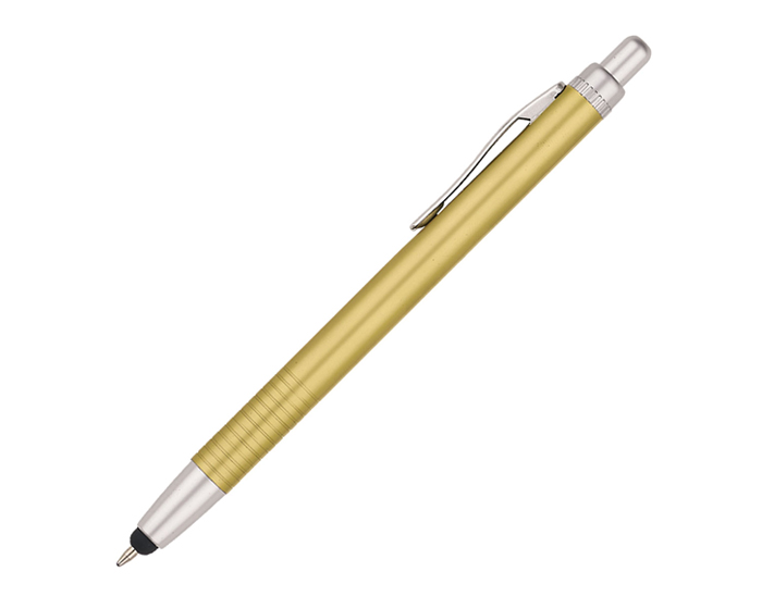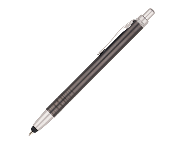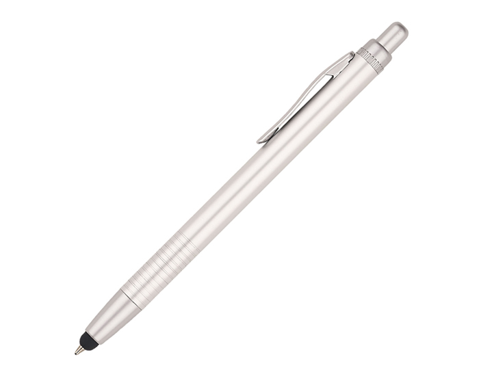BRAD - Bolígrafo de aluminio con punta touch para pantallas táctiles. Cuenta con botón, clip y punta en color plata, cuerpo en diferentes colores y pequeñas hendiduras en la parte inferior para una mejor sujeción. Mecanismo de click.