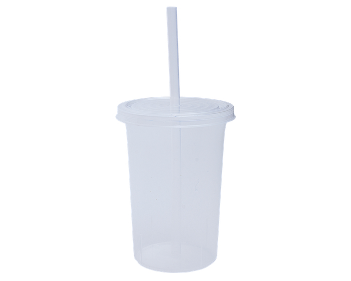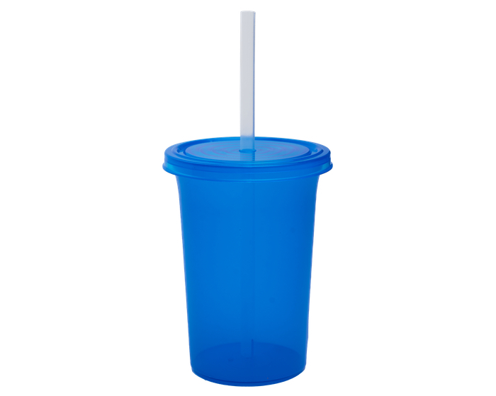 OLAS - Vaso de plástico con tapa a presión y popote. La tapa cuenta con un diseño que simula olas. CAP. 470 ml. *BPA FREE.