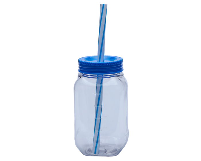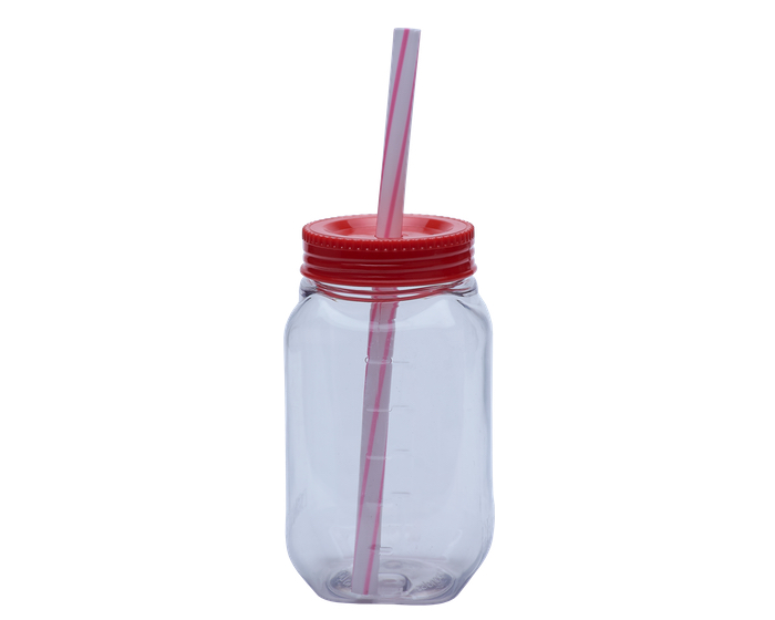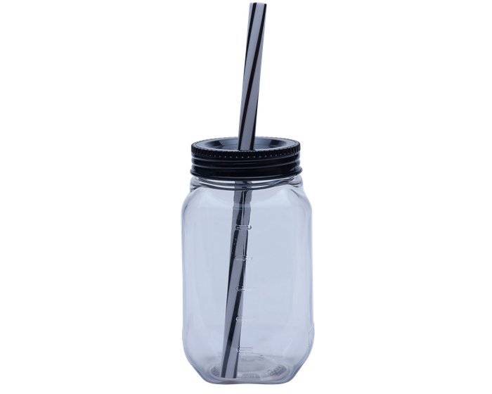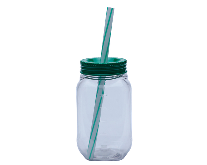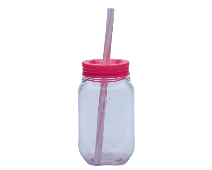 DRINKING - Vaso de plástico cuadrado transparente con tapa de rosca y popote rígido en color. CAP. 600 ml. *BPA FREE.