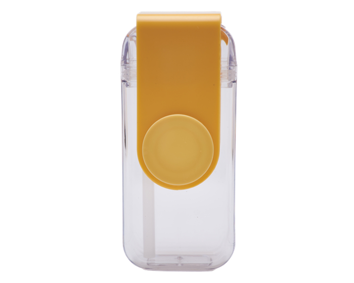 JUICY - Cilindro de plástico transparente con diseño en forma de "cajita para jugo". Cuenta con asa giratoria en color pastel, la cual al deslizarse hacia un lado permite que se expulse el popote. Al regresar el asa a la posición vertical, el popote vuelve a colocarse en su lugar. El popote es de silicón, no tóxico. La tapa sella a presión y cuenta con seguro para líquidos. CAP. 280 ml. Presentación: caja en color blanco.
