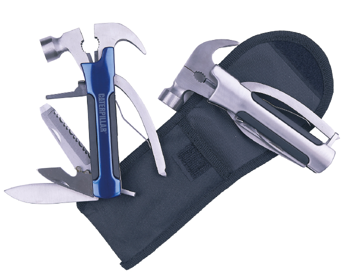 THOR - Herramienta plegable tipo martillo con 11 funciones. Incluye: martillo, pinzas, cortador de alambre, sacaclavos, 2 desarmadores planos, desarmador de cruz, destapador, lima, cuchillo y sierra. Cuenta con seguro de bloqueo para fijar las herramientas. Incluye estuche. Presentación: caja en color blanco.
