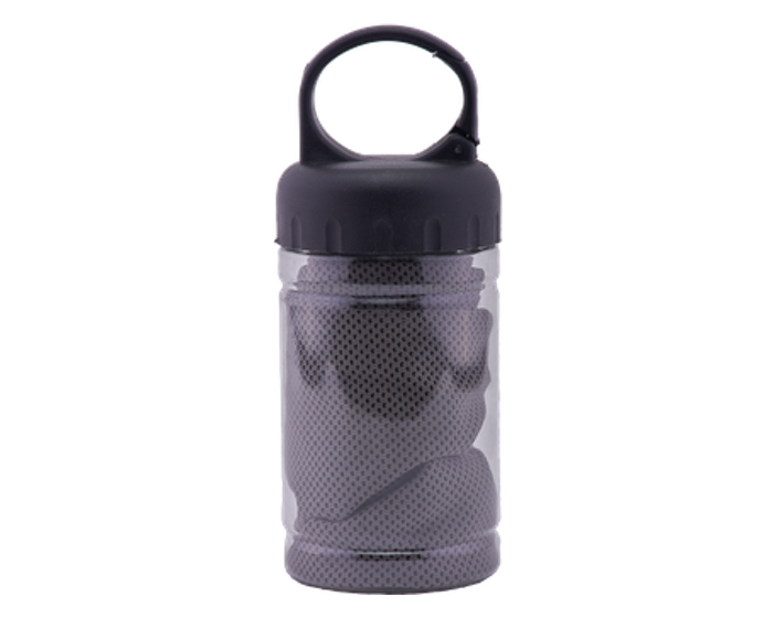 REFRESH - Toalla de microfibra que conserva la temperatura fría por más tiempo. Al tener contacto con la piel produce una sensación de frescura. Ideal para usarse en el gimnasio, playa o en cualquier ambiente o actividad que produzca calor en el cuerpo. Incluye envase transparente de plástico PET con asa, para fácil transportación, el cual tiene una apertura que permite colocarse en la mochila, maleta o en la presilla del pantalón.