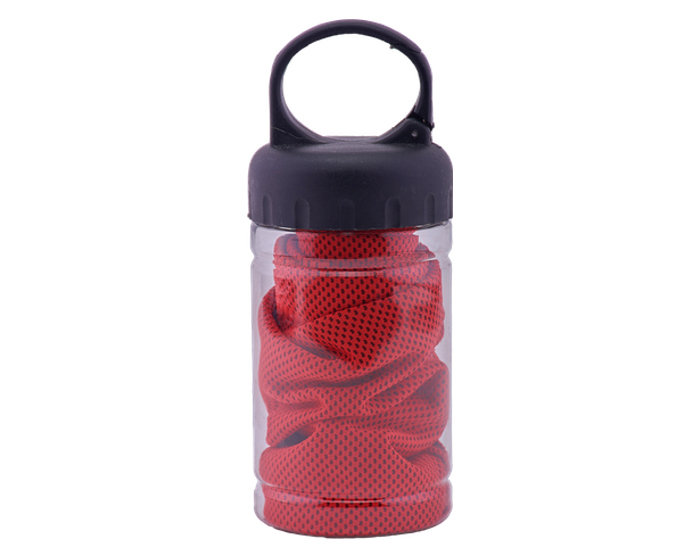 MATERIAL: Envase: Plástico PET // Toalla: Microfibra MEDIDAS: Envase: Ø 6.5 x 17 cm / Toalla: 30 x 80 cm IMPRESION: SE FC MED. EMPAQUE: 70 x 38 x 38 cm PESO EMPAQUE: 10kg PIEZAS EMPAQUE: 100