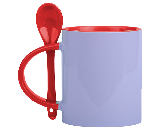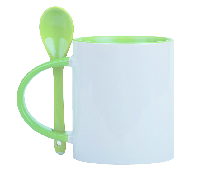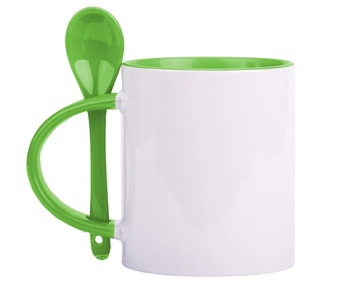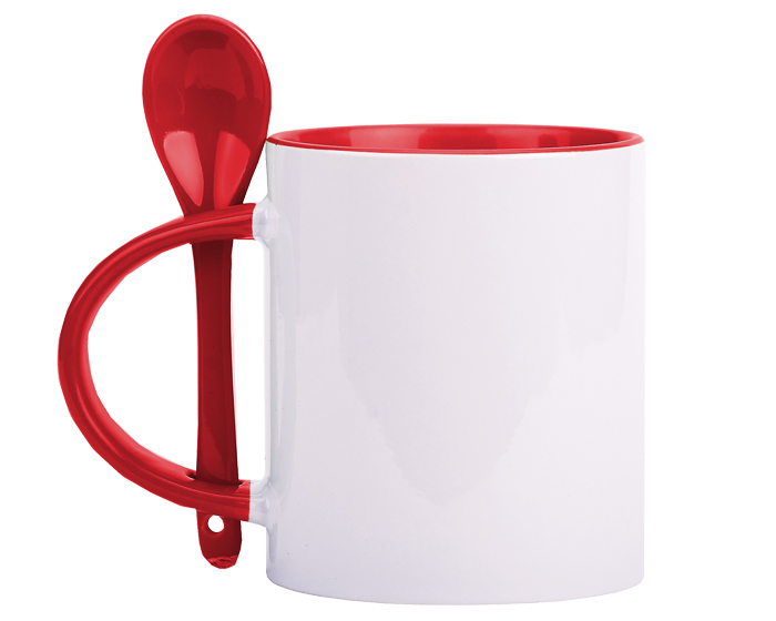 MIRZA - Tarro de cerámica con cuchara para sublimación. El asa, cuchara e interior de la taza son de color diferente. CAP. 325 ml. (11 OZ). Presentación: caja en color blanco.