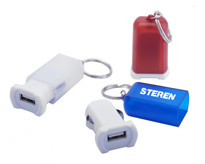 FUZION - Llavero y cargador universal USB para auto de un solo puerto con tapa protectora en color traslúcido. Práctico y de gran utilidad. Voltaje: entrada de 12 a 24 V DC. Salida de 5.1Vd_1A.