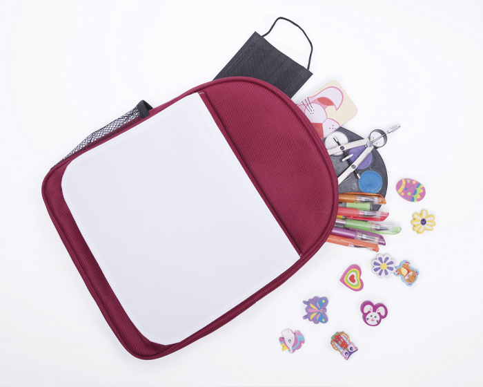 MATERIAL: Poliéster MEDIDAS: 25 x 31.5 x 10 cm IMPRESION: SUB MED. EMPAQUE: 56 x 35 x 50 cm PESO EMPAQUE: 14 kg PIEZAS EMPAQUE: 40