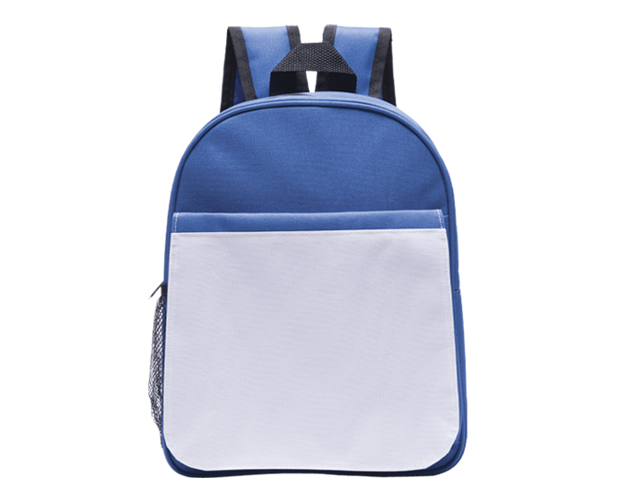 JUSTIN - Mini mochila con solapa desmontable para sublimación, con cierre y broche de pegol, asa y correas ajustables, cuenta con un compartimento frontal y 2 bolsas laterales de malla con resorte.