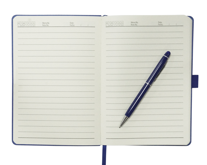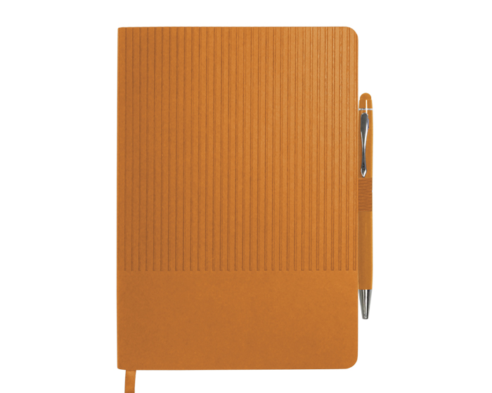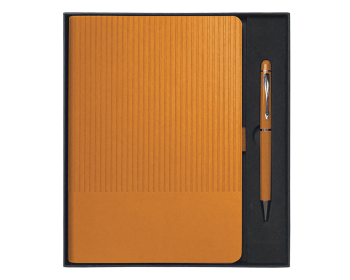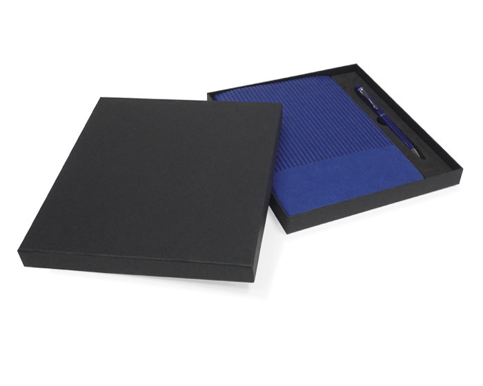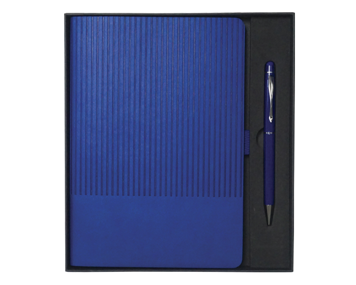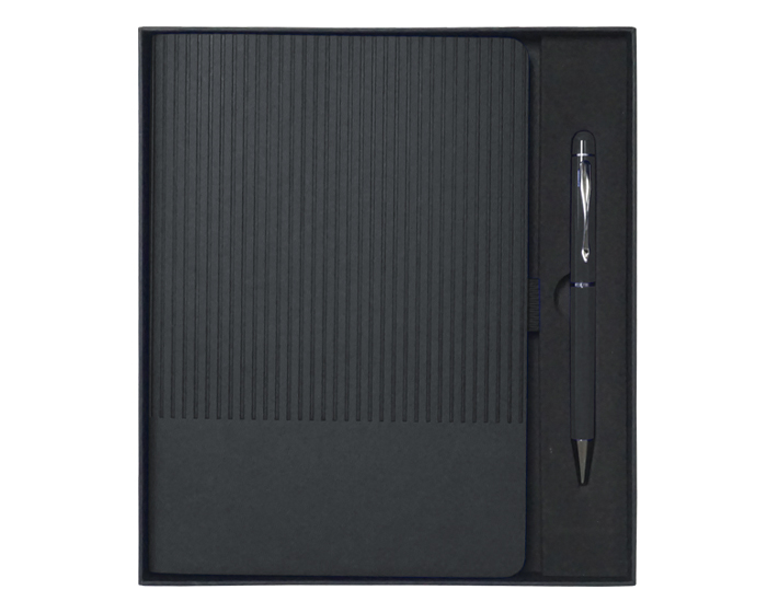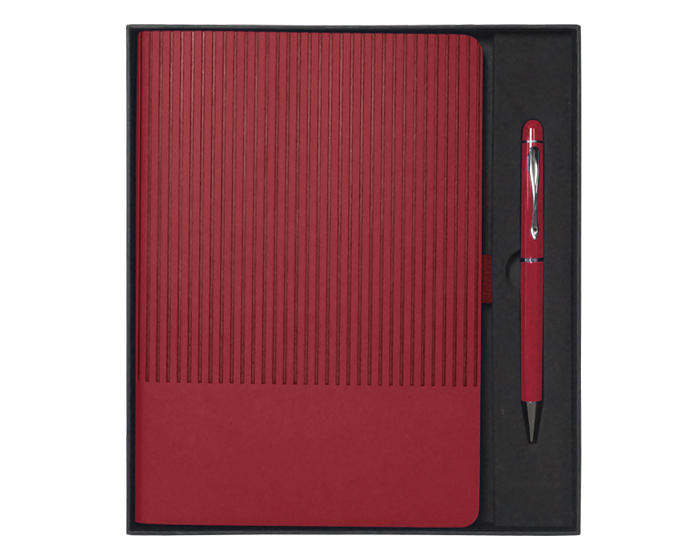 MATERIAL: Libreta: Termo PU / Bolígrafo: Aluminio MEDIDAS: Libreta: 14.7 x 21 cm / Bolígrafo: 14 x 1 cm / Caja: 19.6 x 22 cm IMPRESION: SE GL HS GS MED. EMPAQUE: 48 x 39.5 x 23 cm PESO EMPAQUE: 15 kg PIEZAS EMPAQUE: 30