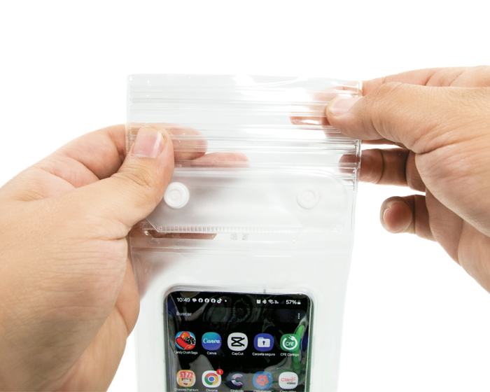 MAR - Funda a prueba de agua con 3 cierres herméticos y tira de pegol, con cinta para colgar y broche ajustable. A través de la superficie de la funda puedes utilizar el teléfono desde el exterior.