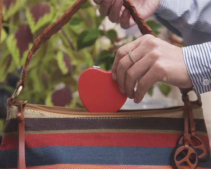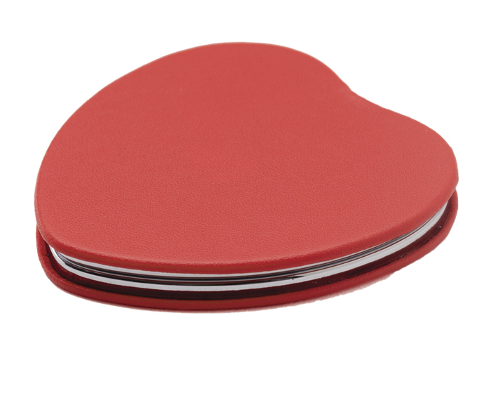 IN LOVE - Espejo doble de PU en forma de corazón, detalles en cromo y cierre magnético, cuenta con espejo normal y de aumento (1X/2X).