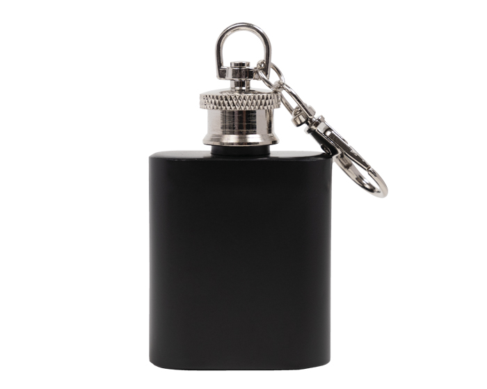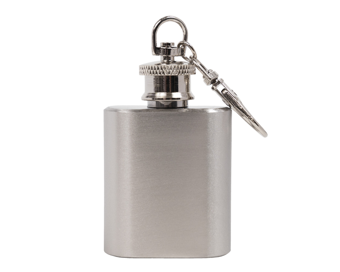 MEZCALITO - Licorera de bolsillo con broche para colgar con tapa de rosca. Cap. 1 OZ. (30 ml.). Presentación: caja individual de kraft.