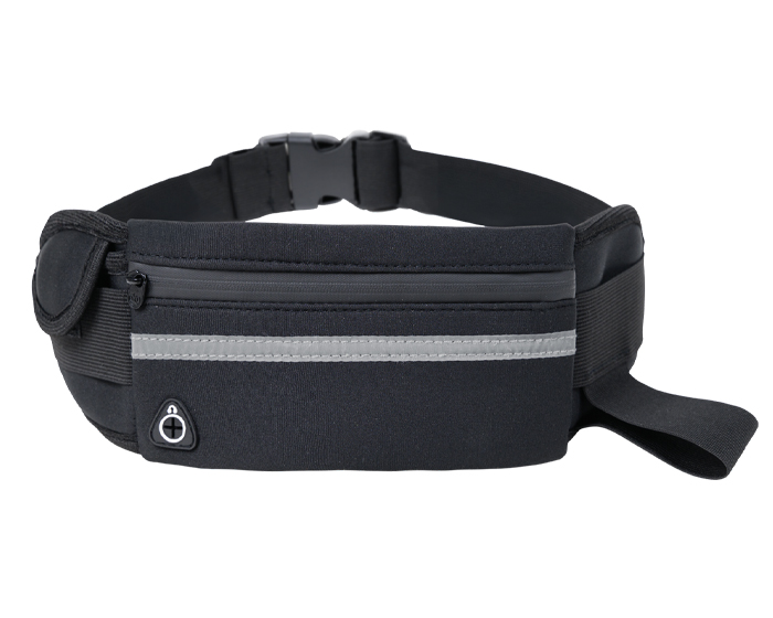 ZUMBA - Cangurera con cinta de resorte ajustable y broche de seguridad. Cuenta con 2 compartimentos laterales, 1 para guardar accesorios con broche de contacto y otro de resorte para botellas. Compartimento interno con cierre, cinta reflejante y salida para audífonos de cable.