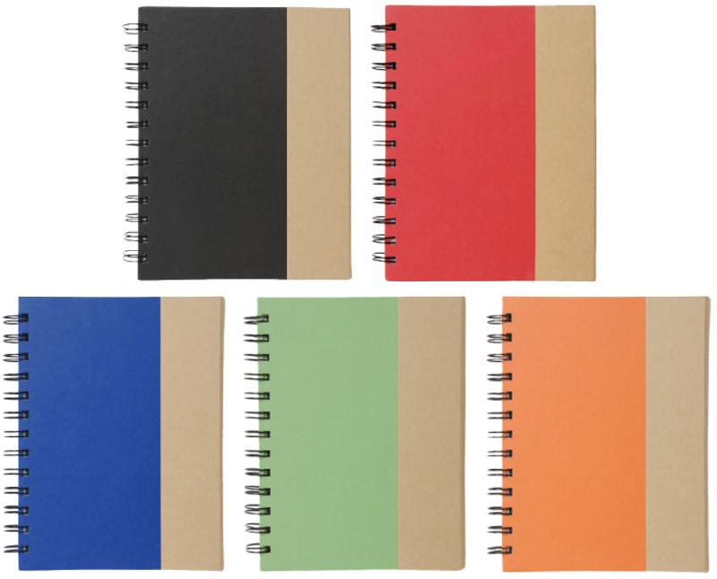 AULEX - Libreta ecológica de hojas crema con cubiertas de cartón reciclado, incluye bolígrafo de cartón con mecanismo de click. Tiene resorte para sujetar el bolígrafo y otro para mantener cerrada la libreta.