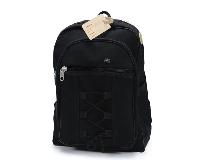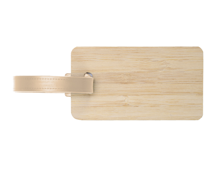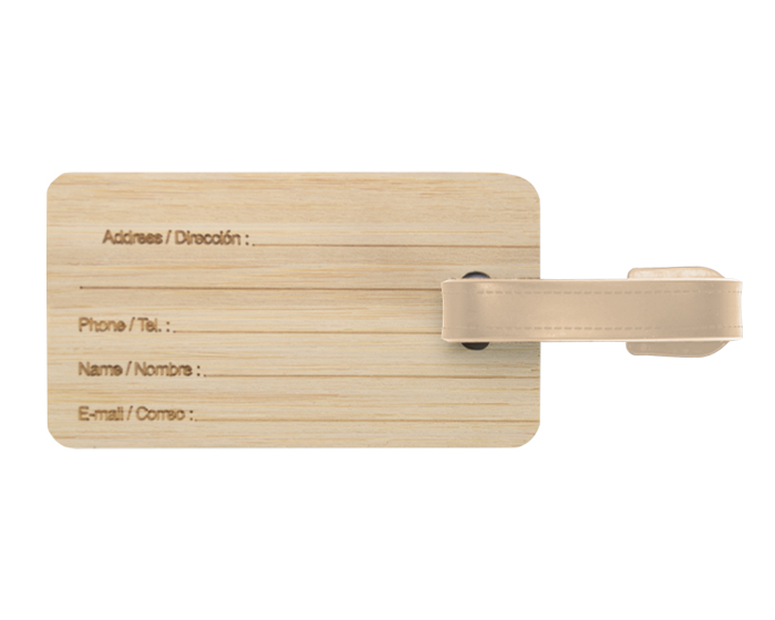 MARRUECO - Identificador de equipaje de bambú. Cuenta con una pulsera de PVC y datos personales en español/inglés.