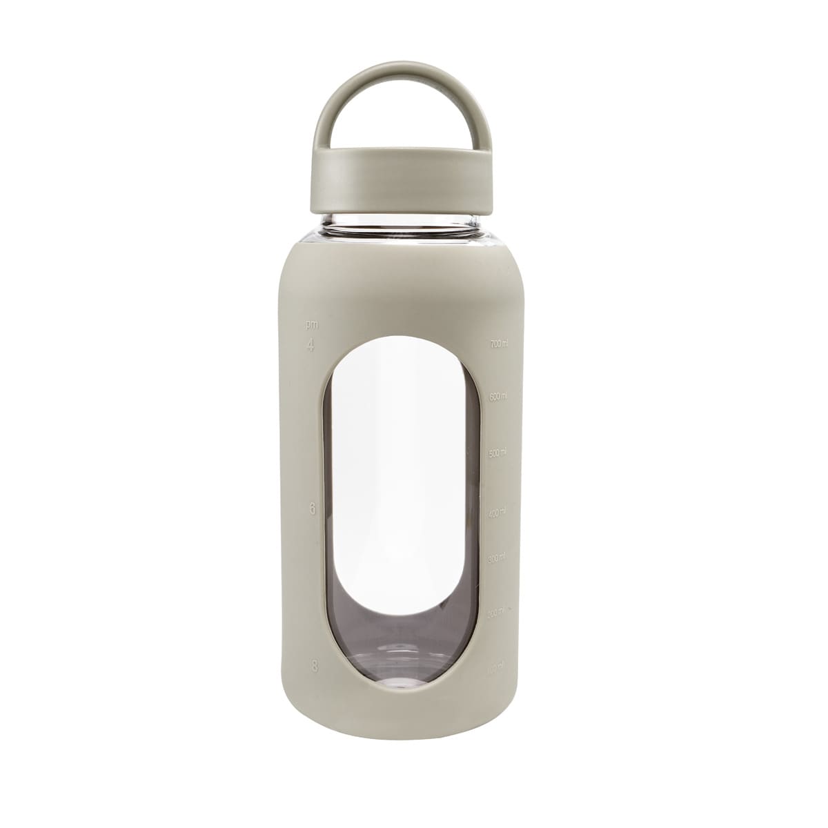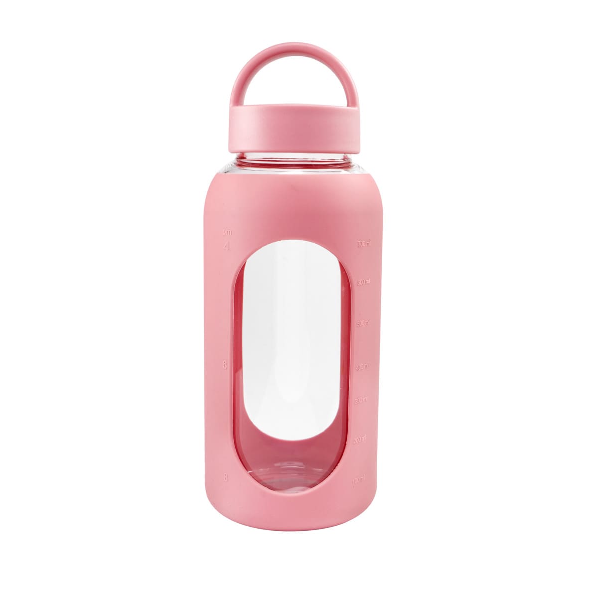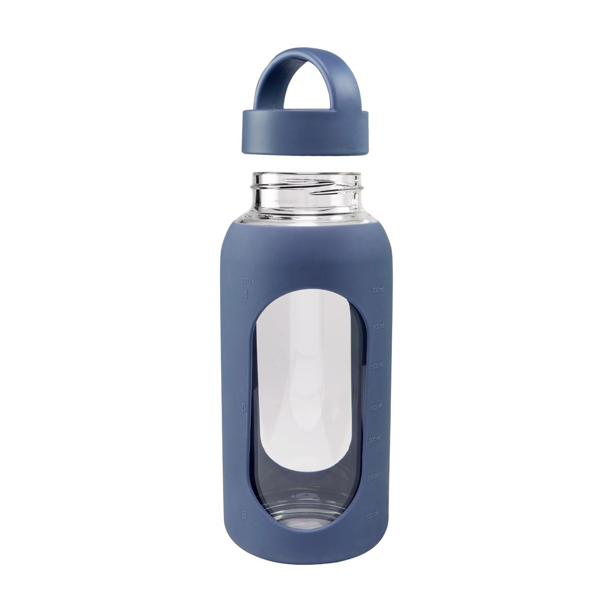 CILINDRO DE VIDRIO IDARA - Cilindro de vidrio con manga de silicón graduada en ml. Tapa de plástico con sistema de rosca y asa. Vidrio resistente a bebidas calientes y frías. Incluye caja individual.