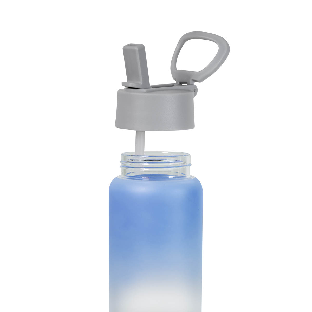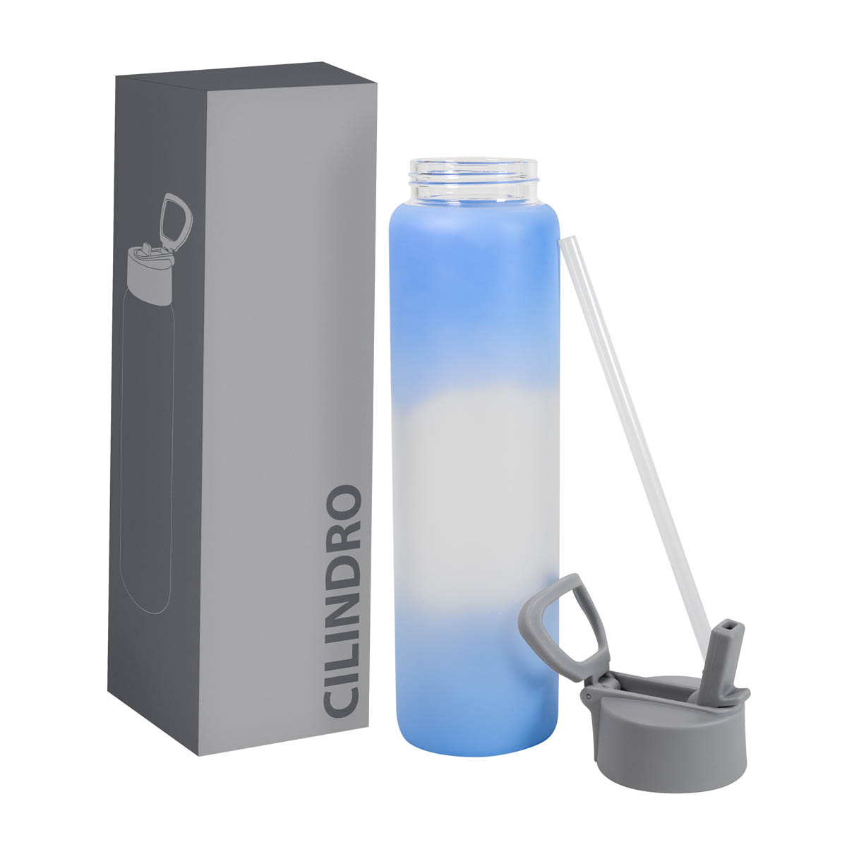 CILINDRO PARA SUBLIMAR BEIRA - Cilindro de vidrio con terminado frosty y un recubrimiento especial para sublimar. Tapa de plástico con cierre de rosca asa y popote retráctil. Incluye caja individual.