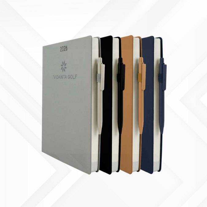 MEET Agenda diaria con calendario de 2025 a 2029. Dentro de sus apartados contiene: datos personales, teléfonos de emergencia y festividades personales. Incluye bolígrafo de plástico con tinta gel..
