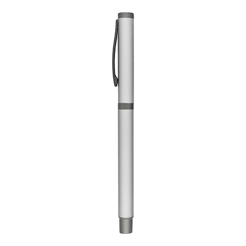 AVENTUS Bolígrafo metálico acabado rubber con detalles en base y tapa color gris.