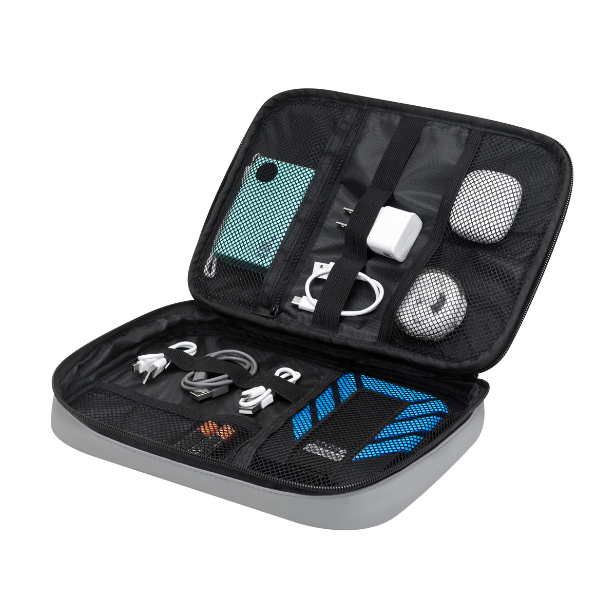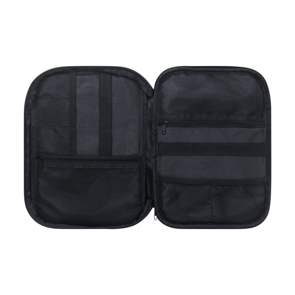 ORGANIZADOR JEFF - Estuche para llevar cargadores, cables y otros accesorios electrónicos de manera segura, evitando enredos y daños. Incluye un bolsillo frontal con cierre y asa lateral para transportar fácilmente. En su interior, agrega dos bolsillos de malla con cierre, 5 compartimentos de malla y dos bandas elásticas para mantener tus accesorios fijos en todo momento. Su diseño elegante y su material curpiel, lo hacen perfecto para el uso diario, ya sea en el trabajo, de viaje o en casa.