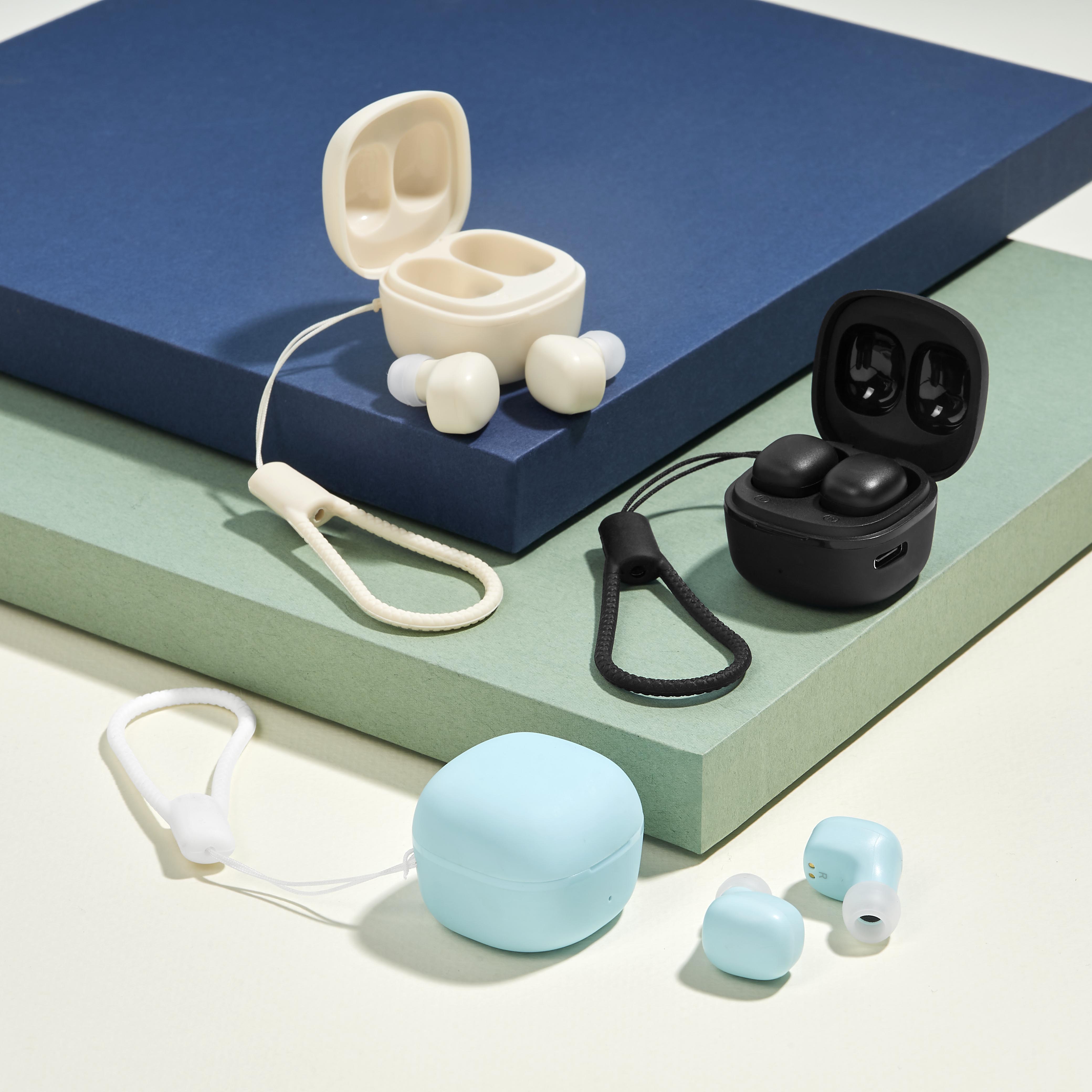 AUDÍFONOS DEZ - Audífonos bluetooth con base recargable. Estuche ultra compacto con asa de silicón para llevarlo a todos lados. Controles integrados touch para llamadas, volumen y reproducción de audio. Reproducción de música 3 a 4 hrs aproximadamente. Rango de conexión de 10 metros. Batería de 28 mAh en los auriculares y 180 mAh en el estuche de carga. Incluye cable cargador USB, estuche de carga con conexión tipo C y caja individual.