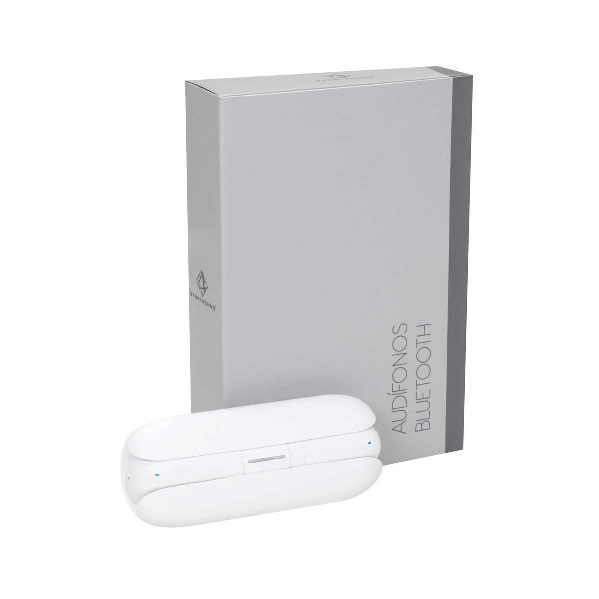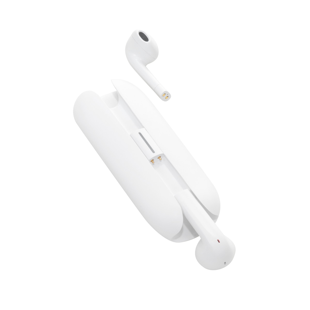 AUDÍFONOS KEMIK - Audífonos bluetooth con base recargable. Controles integrados touch para llamadas, volumen y reproducción de audio. Reproducción de música de 4 hrs aproximadamente. Rango de conexión de 10 metros. Batería de 30 mAh en los auriculares y 200 mAh en el estuche de carga. Incluye cable cargador USB, estuche de carga con conexión tipo C y caja individual.