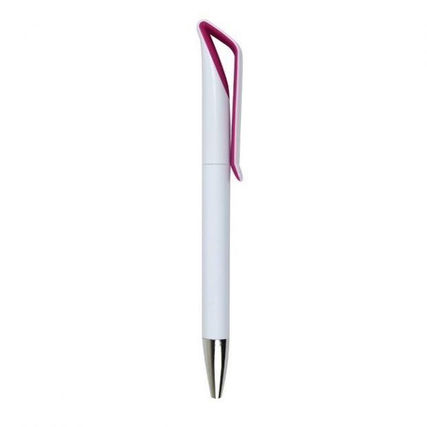 BOLÍGRAFO "PERSO" Cuerpo de color. Clip pulsador y punta color plata. Tinta neg...